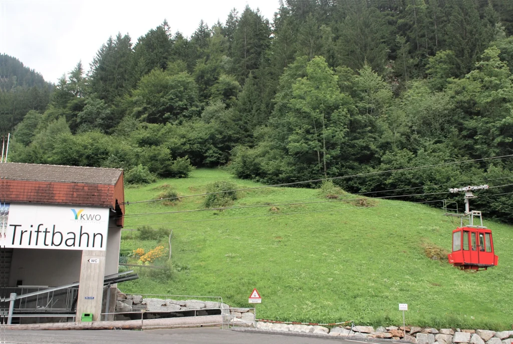 En cabinas pequeñas para cuatro personas se sube desde los 1025m a los 1400m atravesando un impresionante bosque de abetos centenarios y una garganta espectacular que culmina en la estación de Triftbrücke.