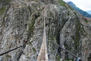 En concreto; el reportaje, se refería al Glaciar de Trift en los Alpes Suizos, cerca del Puerto del Sustenpass..La noticia me interesó y en siguiente verano, incluí en mi recorrido por Suiza, la visita a dicho glaciar. Busqué información sobre el sitio y descubrí que aparte del glaciar, el lugar disponía de un puente colgante que hacía más atractiva la visita..