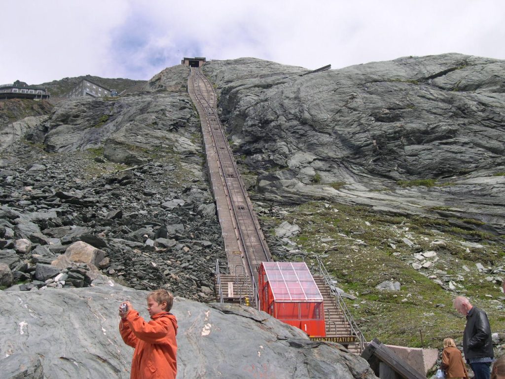 Decidimos bajar al lecho del glaciar en un funicular que nos bajó hasta un sendero muy pedregoso con grandes escalones.