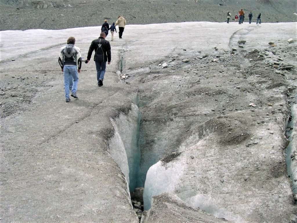 )Media hora más tarde, llegamos hasta el hielo y comenzamos a andar con mucho cuidado por las enormes grietas que aparecen por varios lados..¡Una experiencia alucinante y sobrecogedora!..