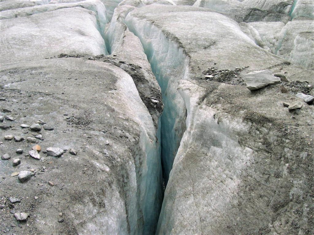 caminamos con cuidado sobre el inestable lecho del glaciar hasta situarnos en el centro