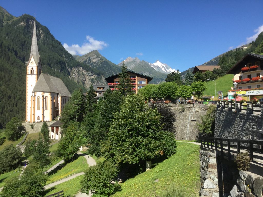 Desde lejos se distingue la esbelta silueta de su iglesia con su elevada torre, rodeada de una intensa vegetación..Allá a lo lejos, se divisa la inconfundible silueta del Grossglockner con su cima siempre cubierta de nieve..