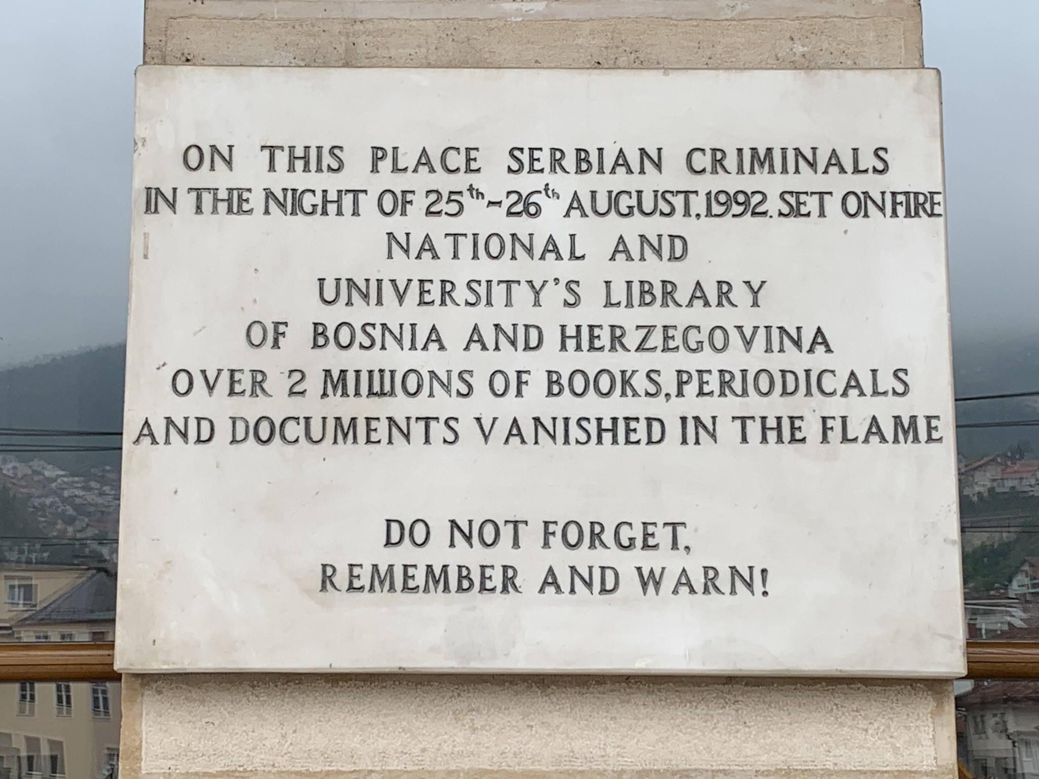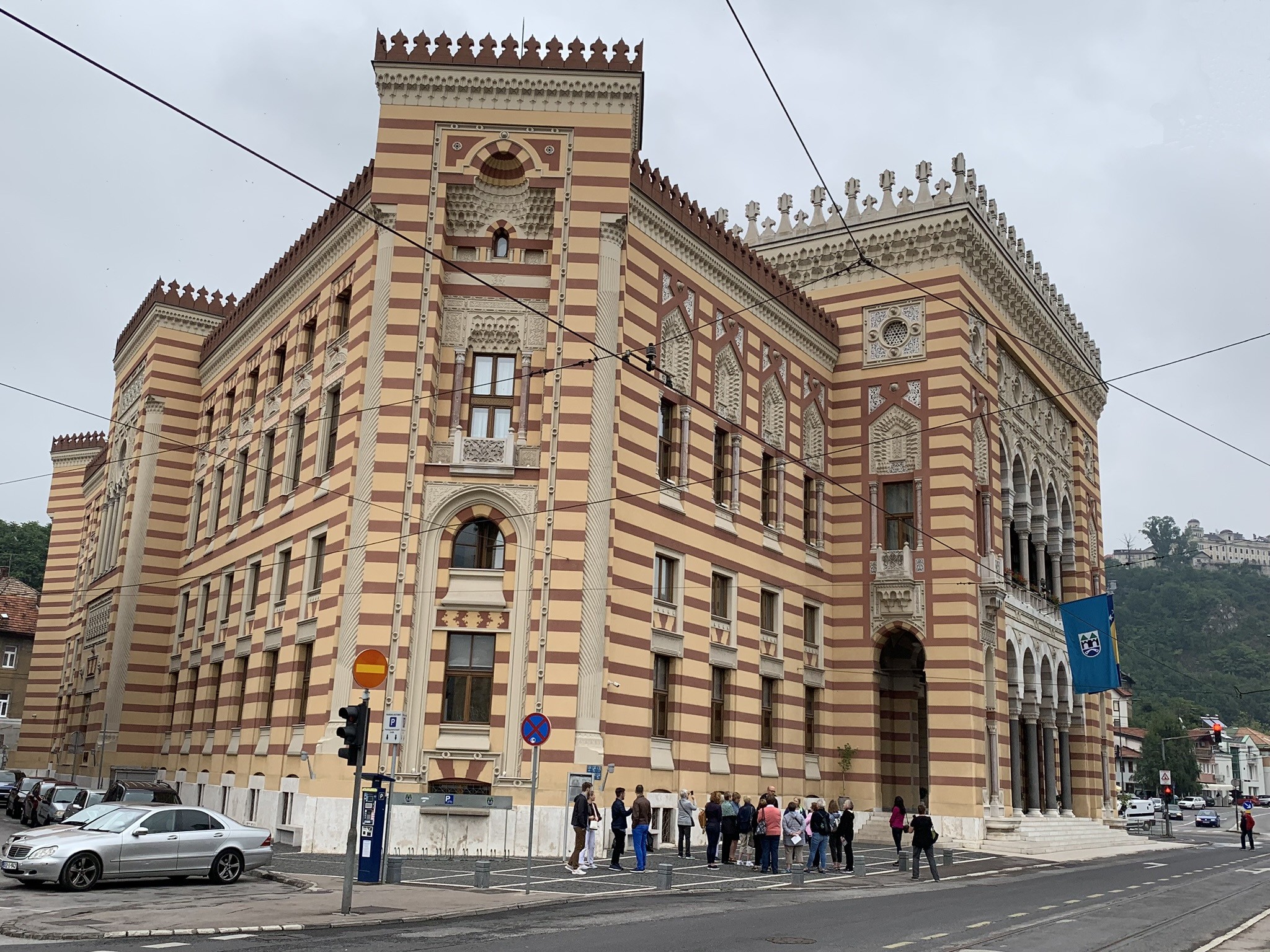 Muy temprano, seguimos la ribera del río Miljacka hasta cerca de la biblioteca de Sarajevo. El edificio construido en 1894; en un estilo ecléctico morisco. En esa época, la ciudad estaba integrada en el Imperio Astro-Húngaro,. Guardaba en su interior miles de libros de período Astro-Húngaro y del Otomano, millones de archivos e incunables conservados durante siglos..