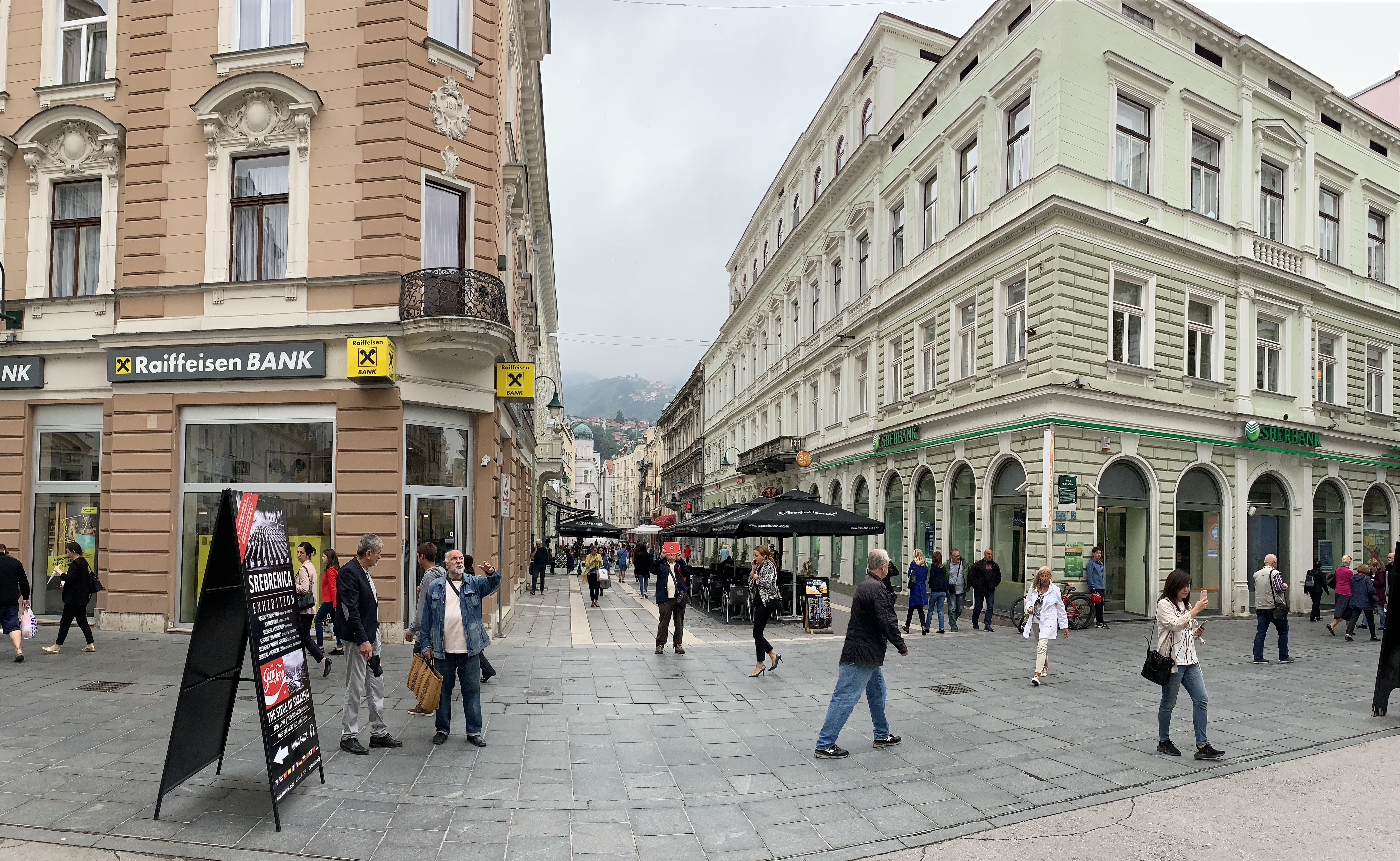 El centro de la ciudad ha sido minuciosamente restaurado; y salvo algunas excepciones, pasear por sus calles peatonales nos enseña multitud de edificios de gran valor estético, algunos de la época imperial y del dominio otomano. Delante de la catedral, han instalado una colosal estatua de Juan Pablo II, como agradecimiento por ser uno de los primeros líderes mundiales en reconocer la independencia de Bosnia y Herzegovina..