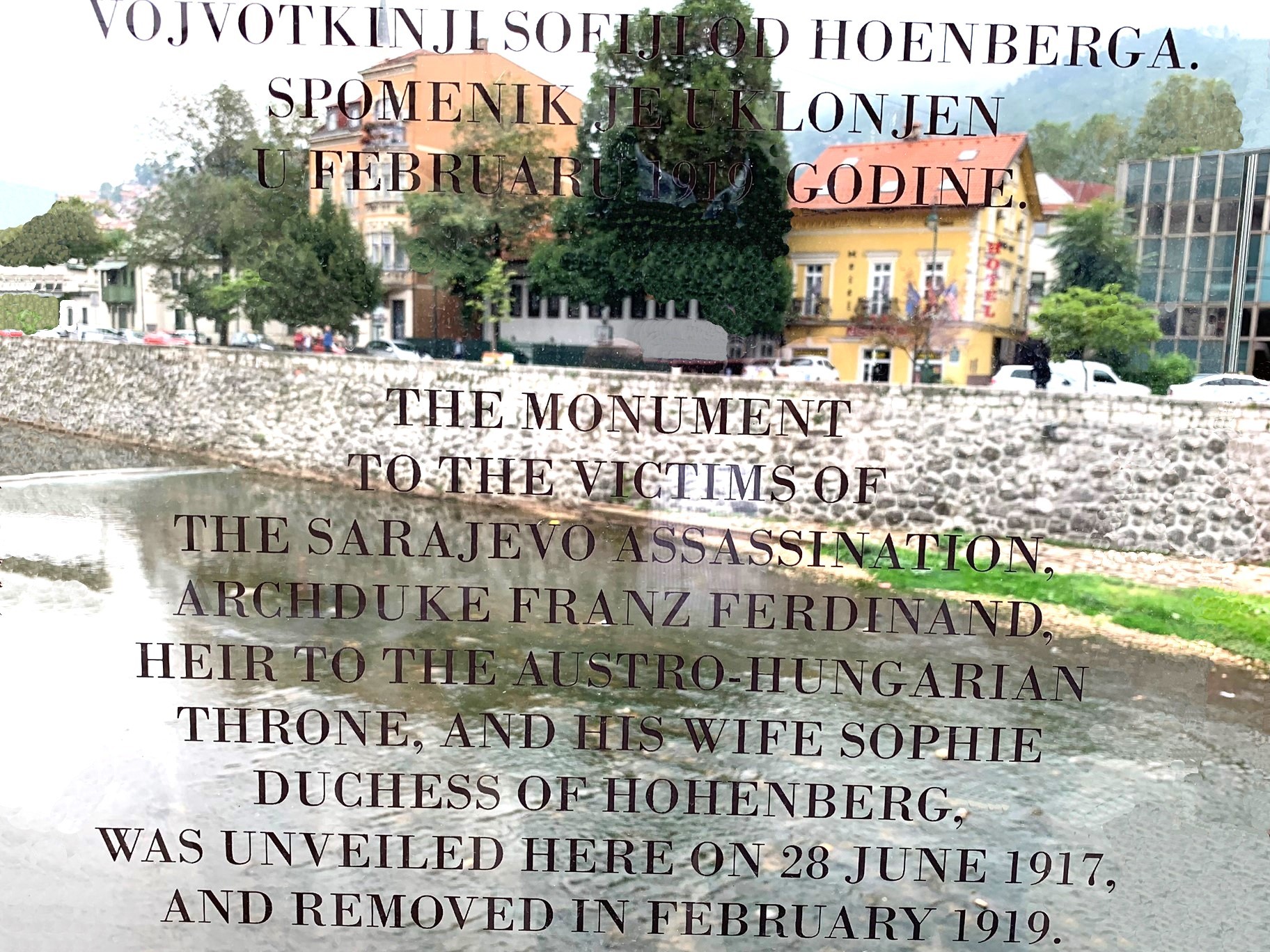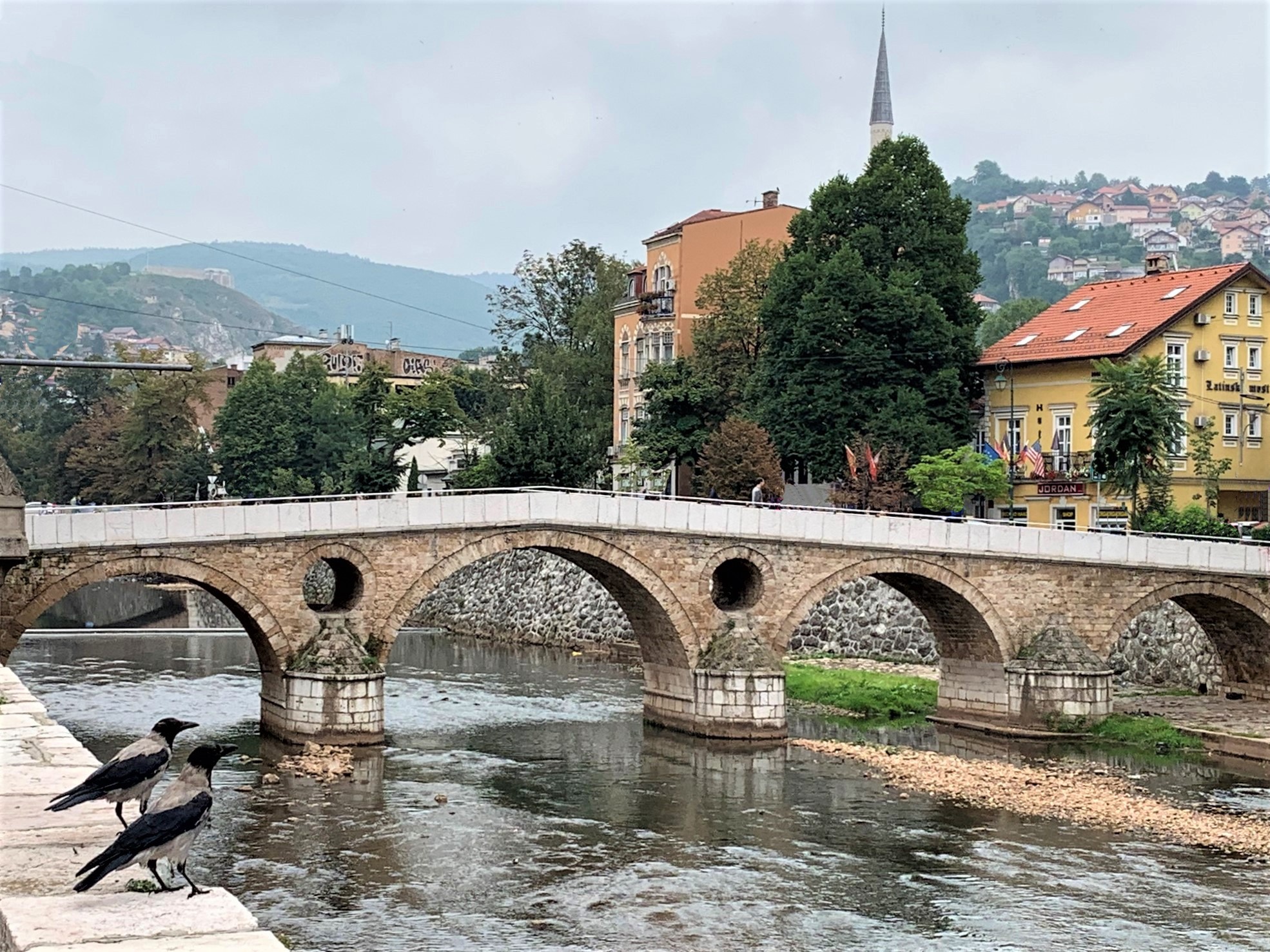 En un corto paseo por la ribera del río, llegamos hasta el Puente Latino, El más emblemático de la ciudad.. Se construyó en el S. XVI y en, él sucedió uno de los episodios; considerado como el detonante, de la primera guerra mundial.. El puente es el más antiguo de la ciudad y se construyó en la época otomana. El día 28 de Junio de 1914 cuando la comitiva del heredero al trono del Imperio Astro-Húngaro Francisco Fernando cruzaba el puente, un nacionalista Serbio-Bosnio disparó contra el matrimonio causándoles la muerte a ambos. Este acontecimiento revolucionó al continente europeo y fue el germen de la primera guerra mundial..